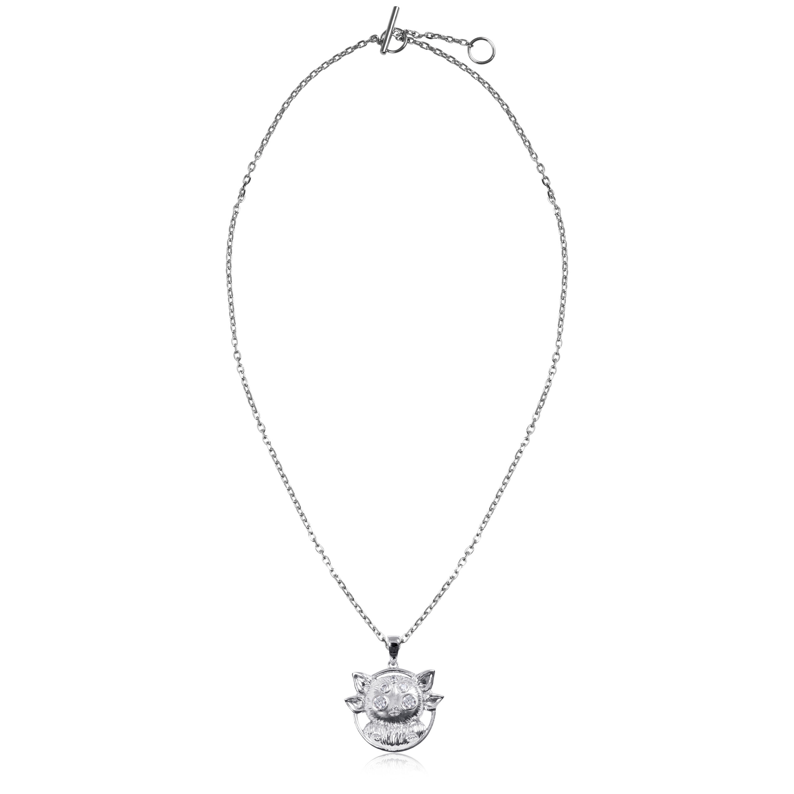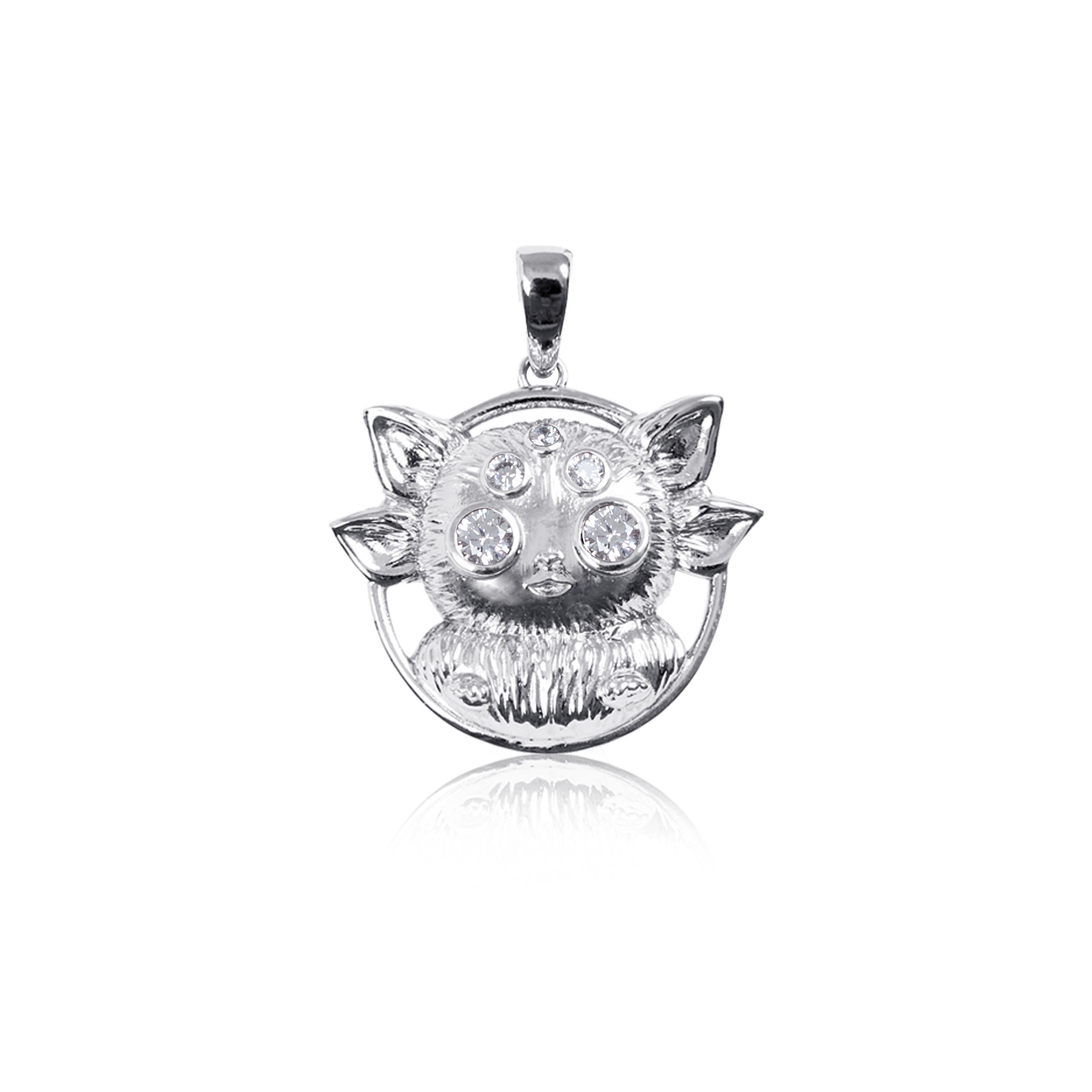 จี้สี่หูห้าตาสีเงิน พลอยสีขาว ผู้ชาย