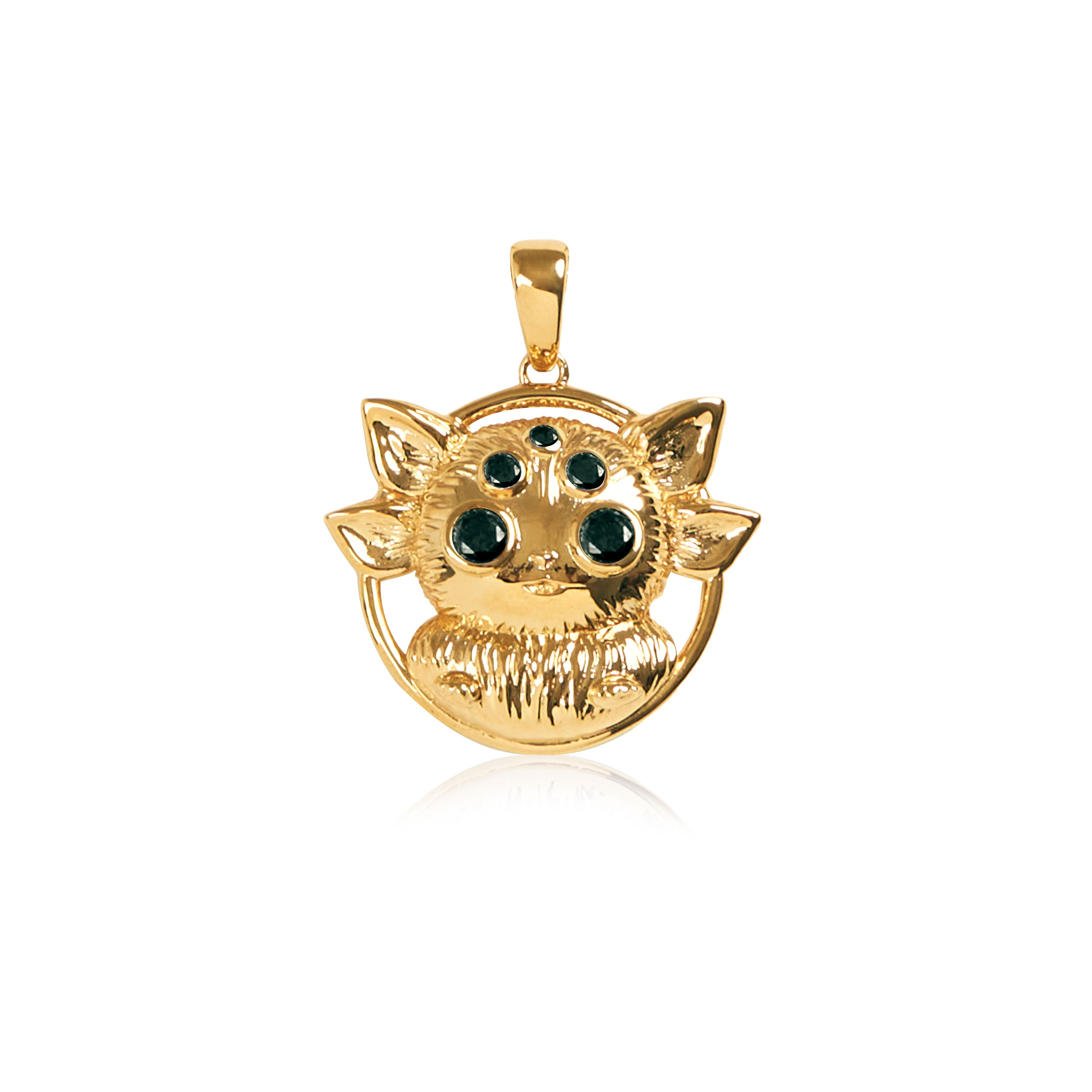 จี้สี่หูห้าตาสีทอง พลอยสีดำ ผู้หญิง